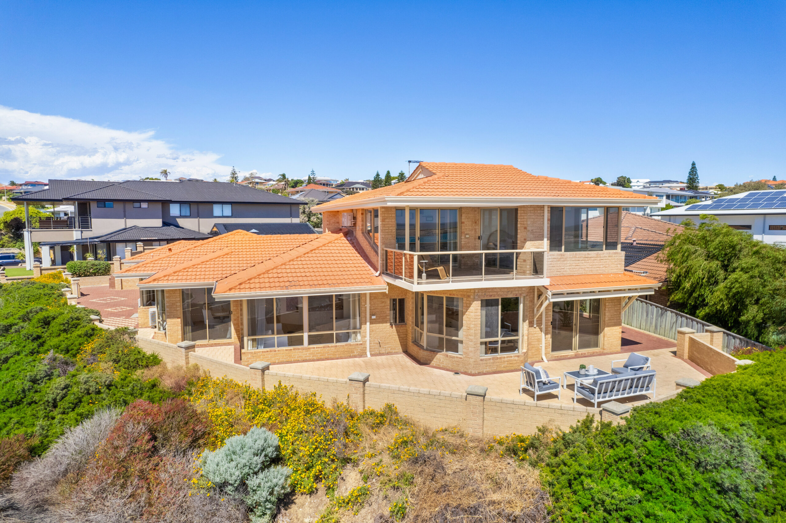 – Generous living zones, well sized bedrooms, stunning master bedroom leading to a covered outdoor patio, upstairs has a second master bedroom with a third living area opening to a balcony to capture those stunning ocean views.